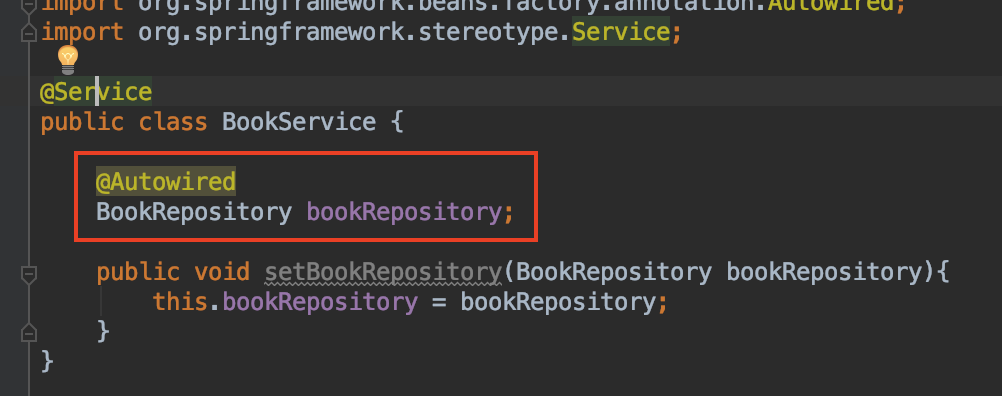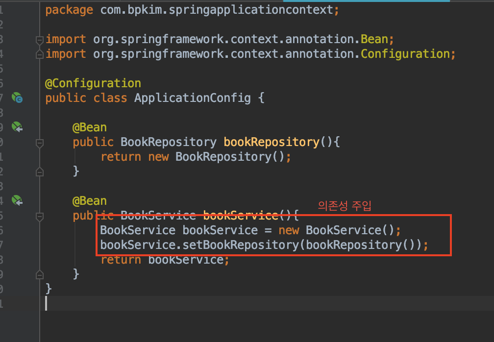 3) bookRepository 를 bookService 에서 사용 할 수 있도록 의존성 주입