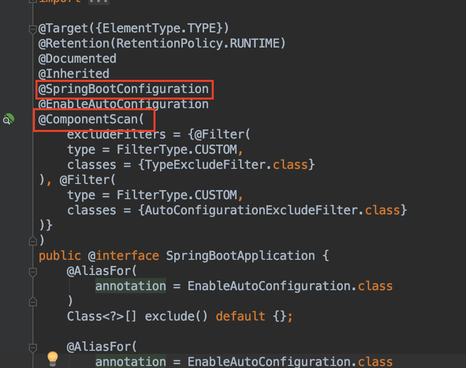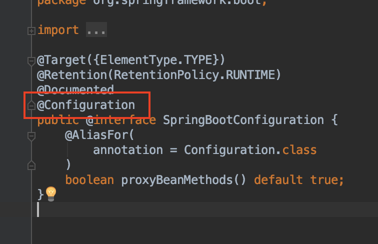 SpringBootApplication 인터페이스 안에 SpringBootConfiguration 안에 Configuration