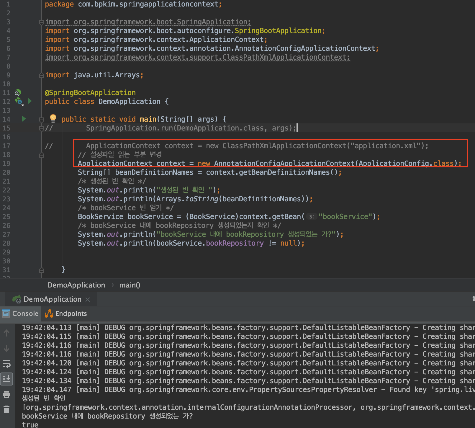** BookService와 BookRepository에 있던 어노테이션을 모두 제거한다.