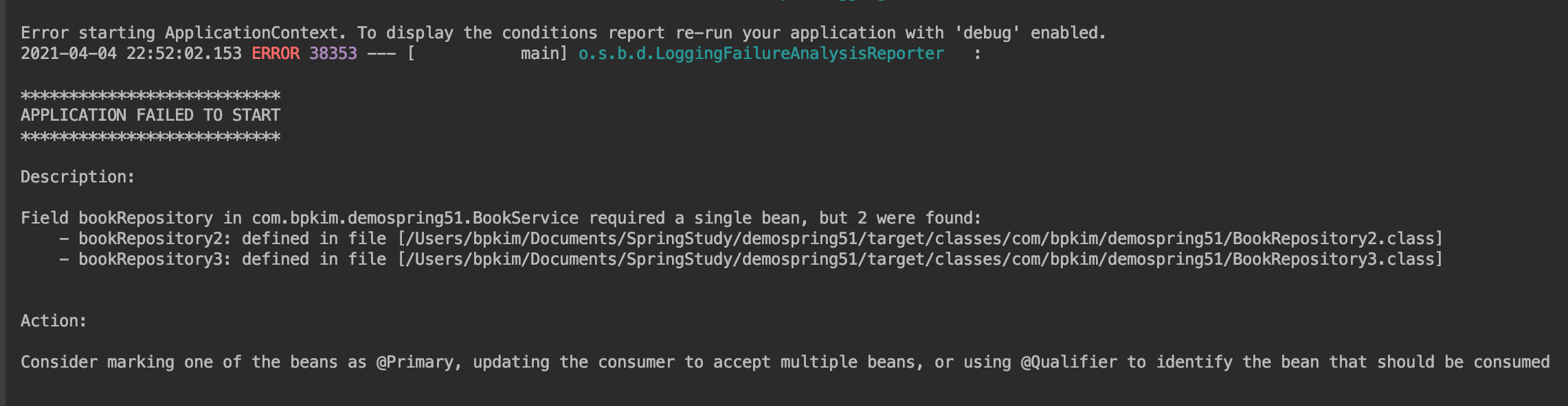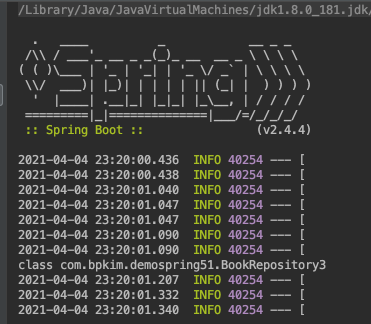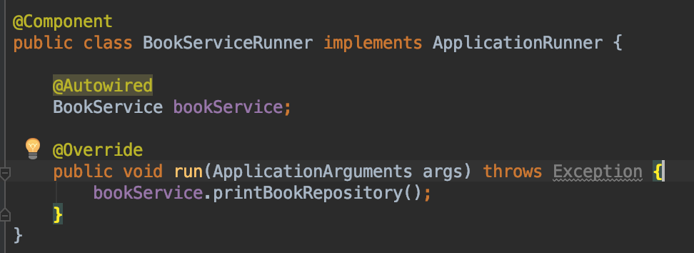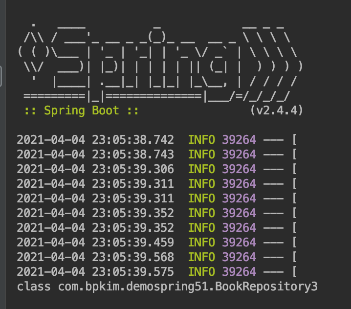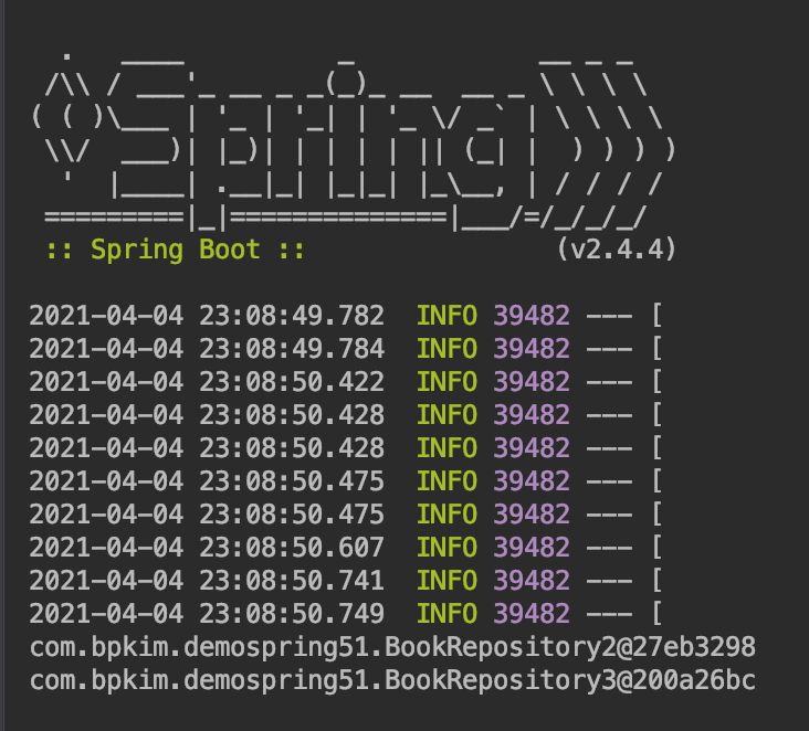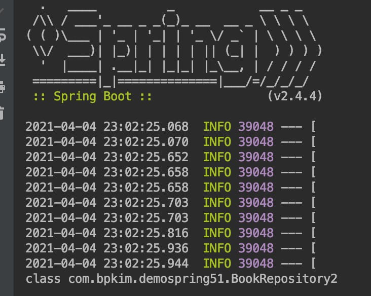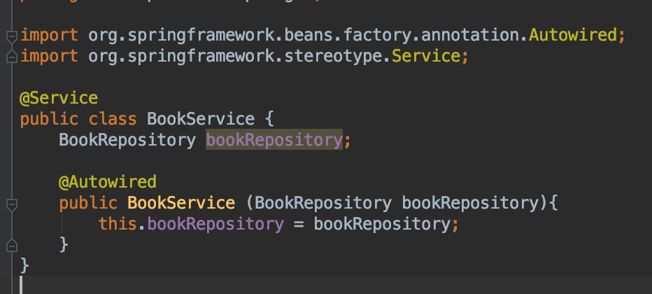사용하던 BookRepository의 빈 설정을 해제 한후 해당 클래스를 의존성 주입을 해본다.
