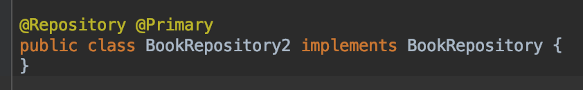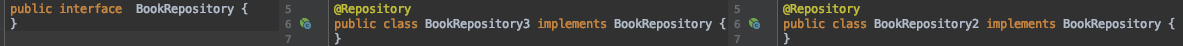 인터페이스 BookRepository 를 상쇽하는 BookRepository2, BookRepository3 을 만들어 bean으로 등록 한하여 의존성 주입하여 테스트 한다.