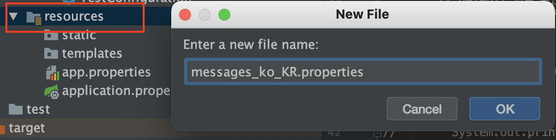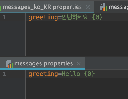 - 리소스 아래에 messages.properties / messages_ko_KR.properties 파일 생성