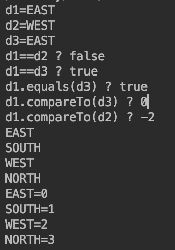 } else if (dir.compareTo(Direction.WEST > 0 ){ // compareTo() 사용