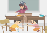 책상 아래로 들어가 책상 다리를 꼭 잡습니다. 흔들림이 멈추면 질서를 지키며 운동장으로 대피합니다.