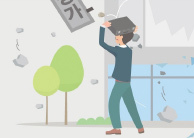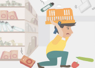 진열장에서 떨어지는 물건으로부터 몸을 보호하고, 계단이나 기둥 근처로 가 있습니다. 흔들림이 멈추면 밖으로 대피합니다.