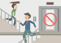건물 밖으로 나갈 때에는 계단을 이용하여 신속하게 이동합니다.(엘리베이터 사용금지)