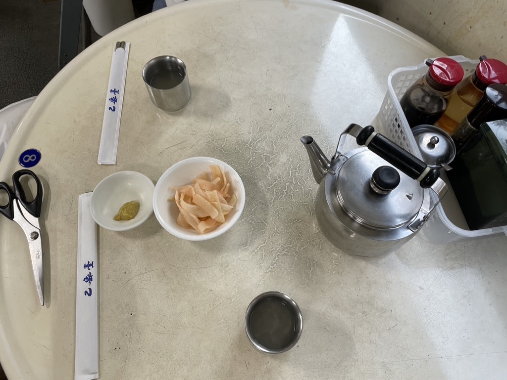주문을 하니 온육수와 겨자, 무절임을 주셔요.