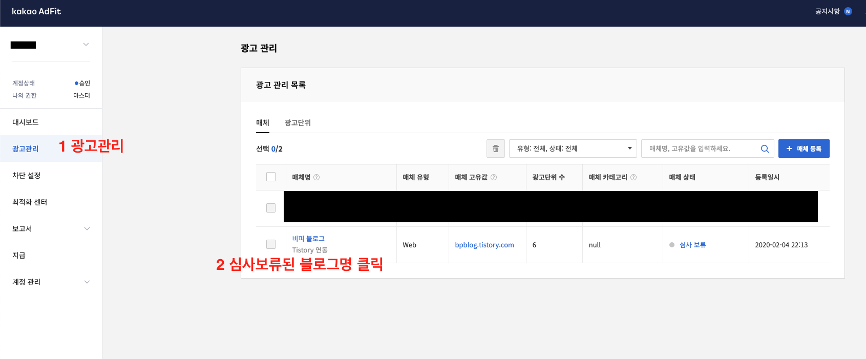 이제 애드핏 관리자로 들어가보겠습니다. 다들 애드핏 가입은 하셨죠??