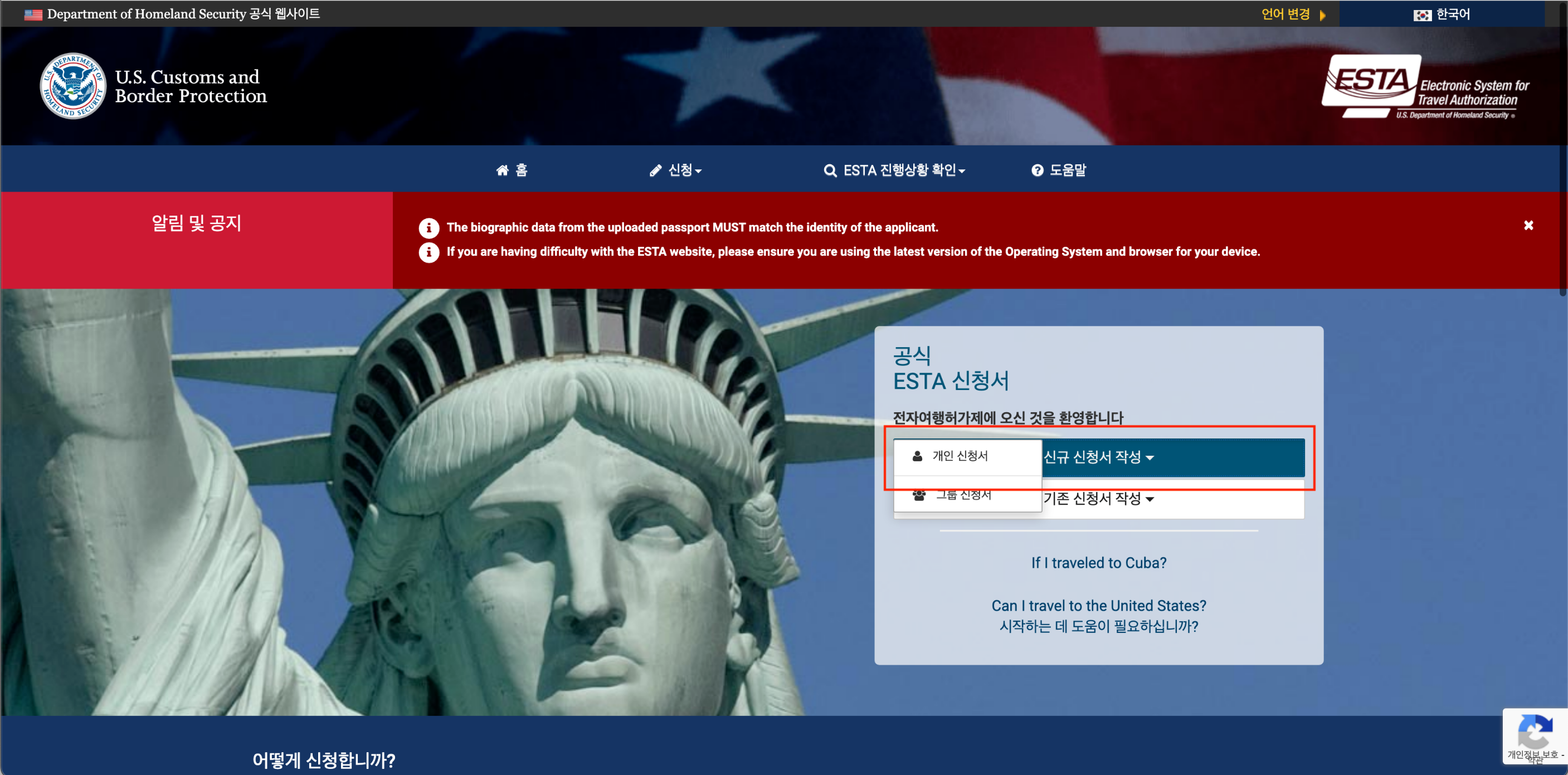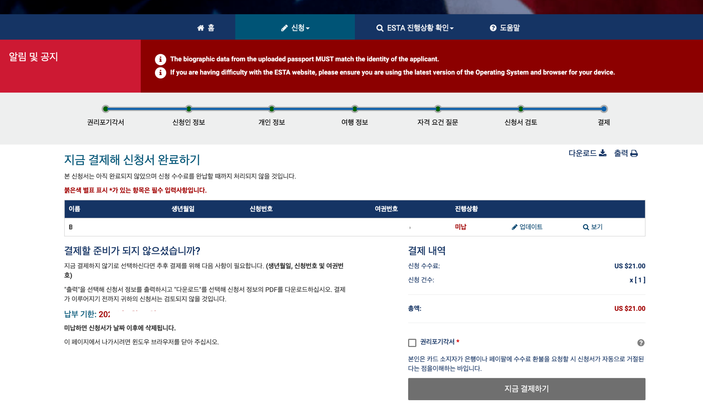 제가 미국 여행을 갑니다 후후 그래서 해봤습니다. 이스타 신청!
