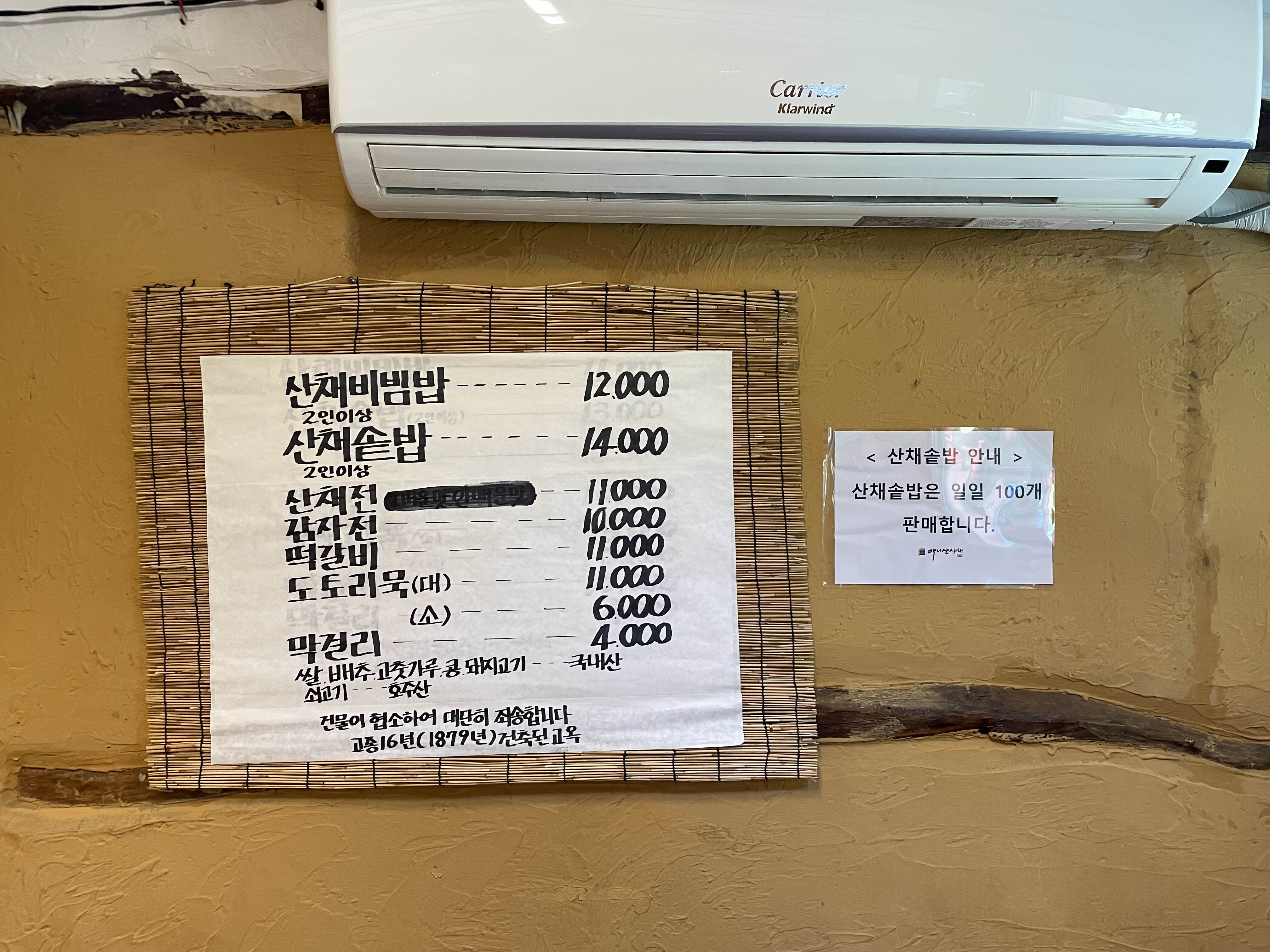 주 메뉴는 산채비빔밥, 산채솥밥입니다.