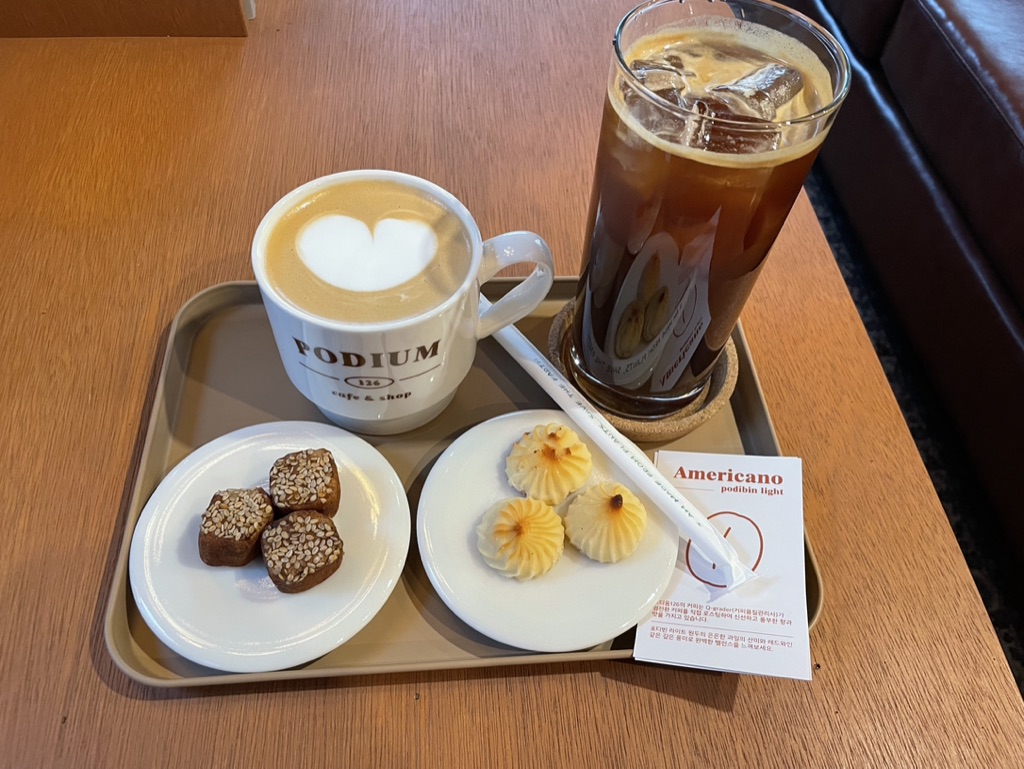 포디움126의 시그니처 메뉴인 포디움라떼 포디움 레떼 세트가 있습니다.