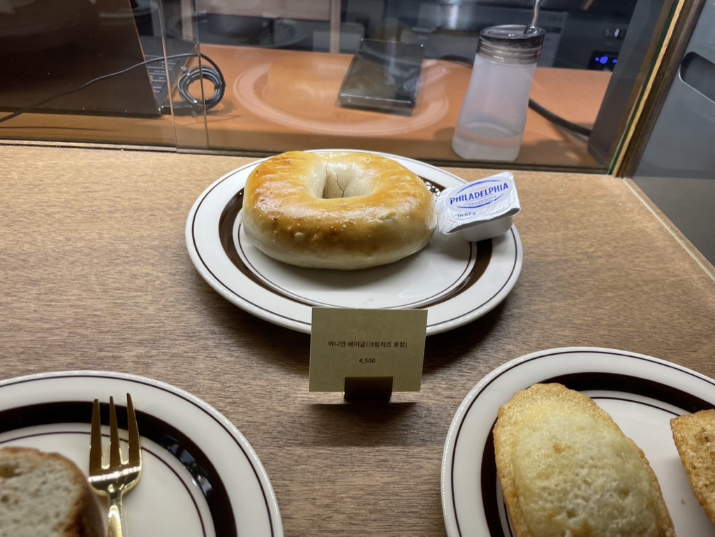 포디움 라떼 세트, 상투과자, 계피과자, 플레인 베이글(크림치즈 포함), 무화가 조각파운드 케이크, 플레인 마들렌, 크림 브륄레 마들렌