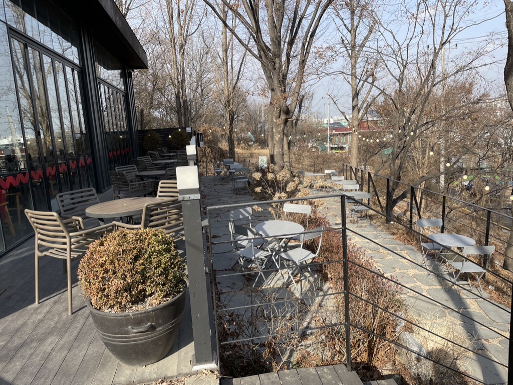 야외 좌석 주변으로 나무가 많아서 봄가을에 오게 되면 너무 좋을 것 같습니다.