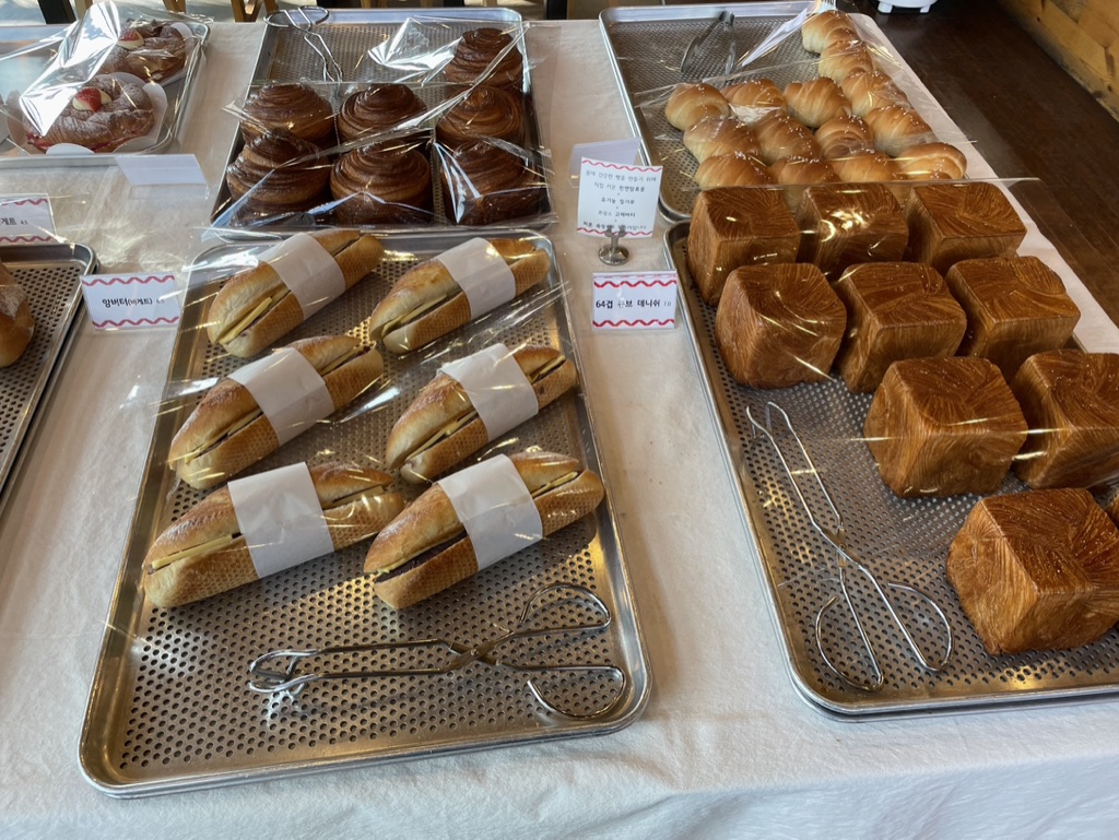 버터 소금빵, 몽블랑, 앙버터, 큐브 데니쉬, 식빵 등등 맛 좋아 보이는 빠들이 먹음직스럽게 있어요.