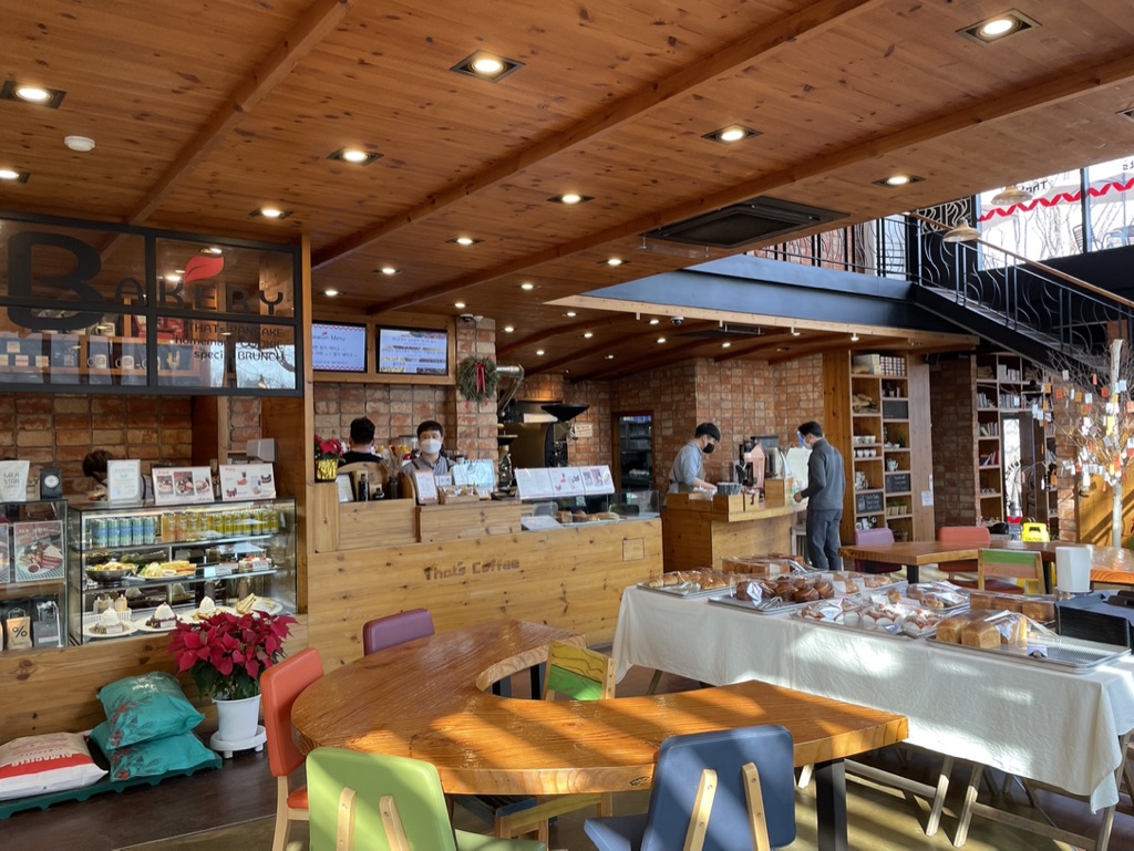 우측으로는 카운터와 빵들 그리고 좌석들이 있습니다.