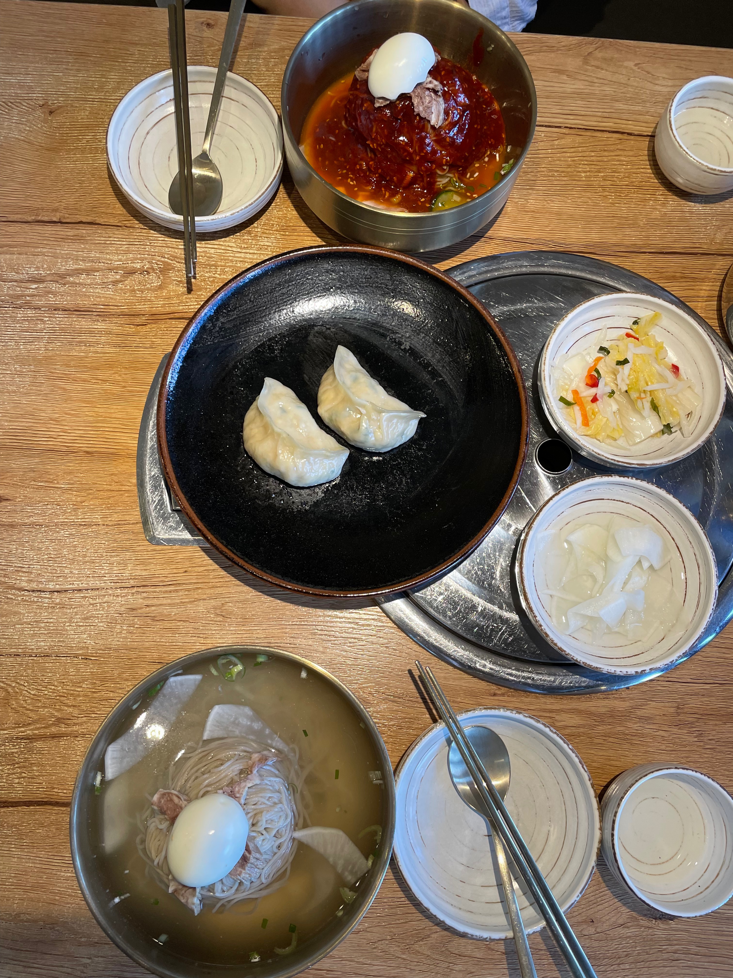 저희는 평양 냉면을 만두 2개가 나오는 늘평양세트와비빔냉면을 시켰어요
