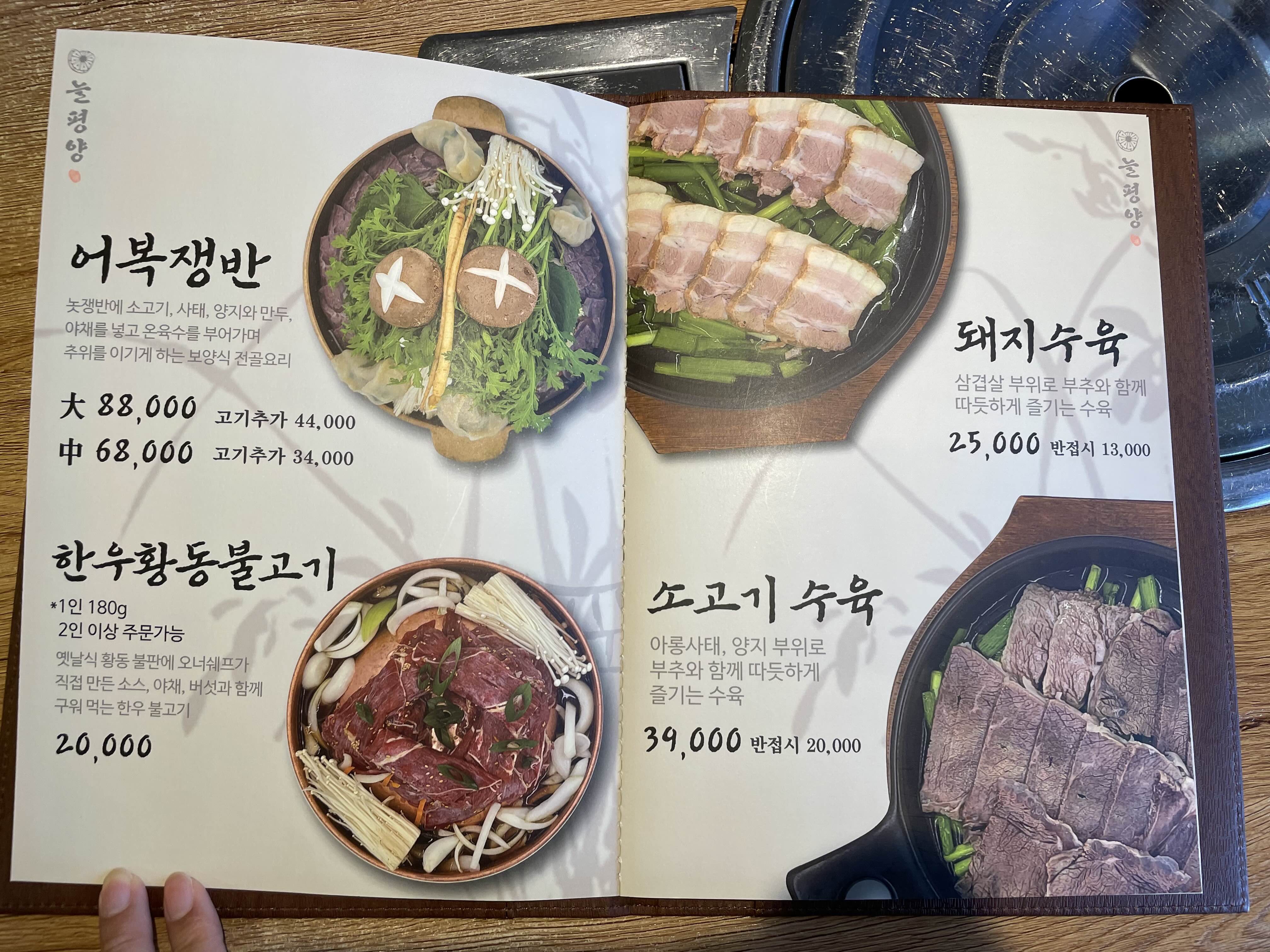 어복쟁반, 한우황동불고기, 돼지수육, 소고기 수육