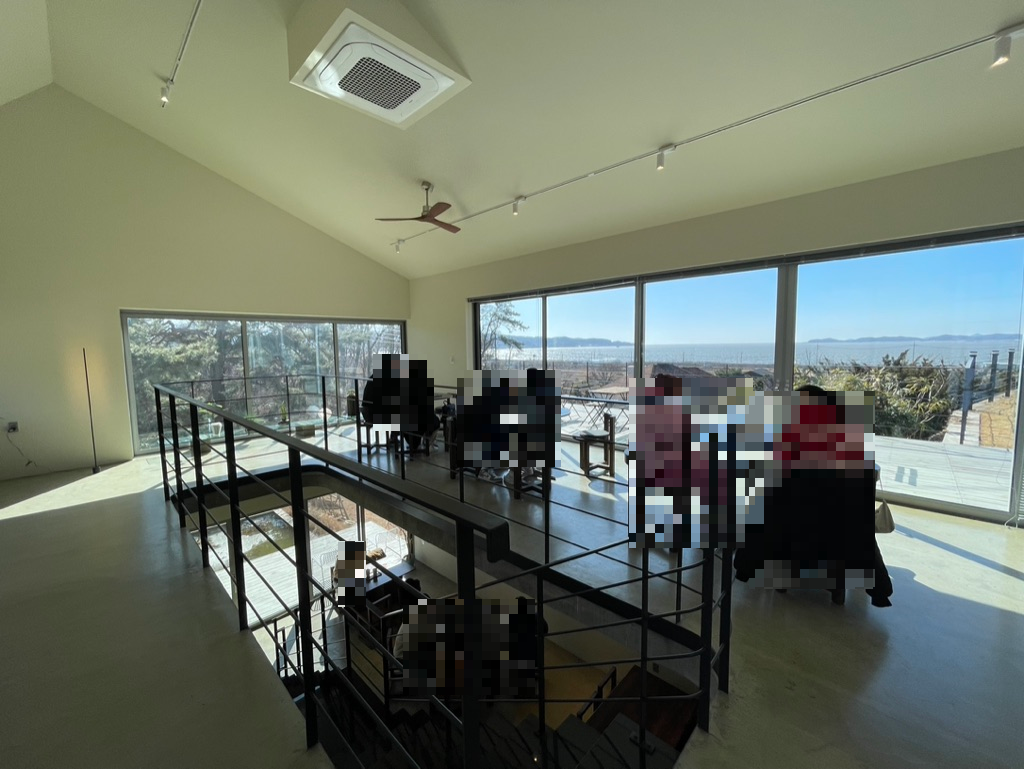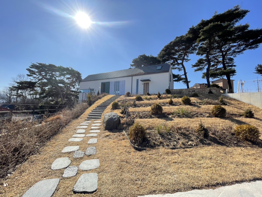 아래층은 약간 바깥 나무와 앞에 있는 집들 때문에 바다가 잘 보이지 않아서 아쉬웠어요.