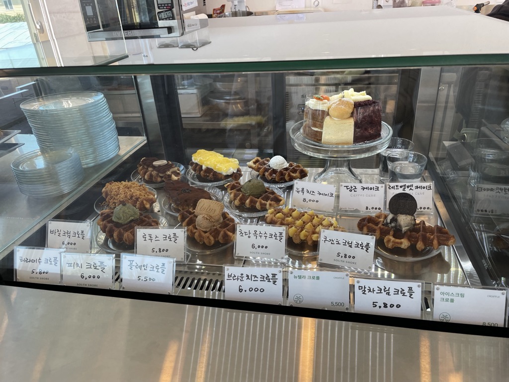 한쪽에는 맛있어 보이는 크로플들이 있었습니다.