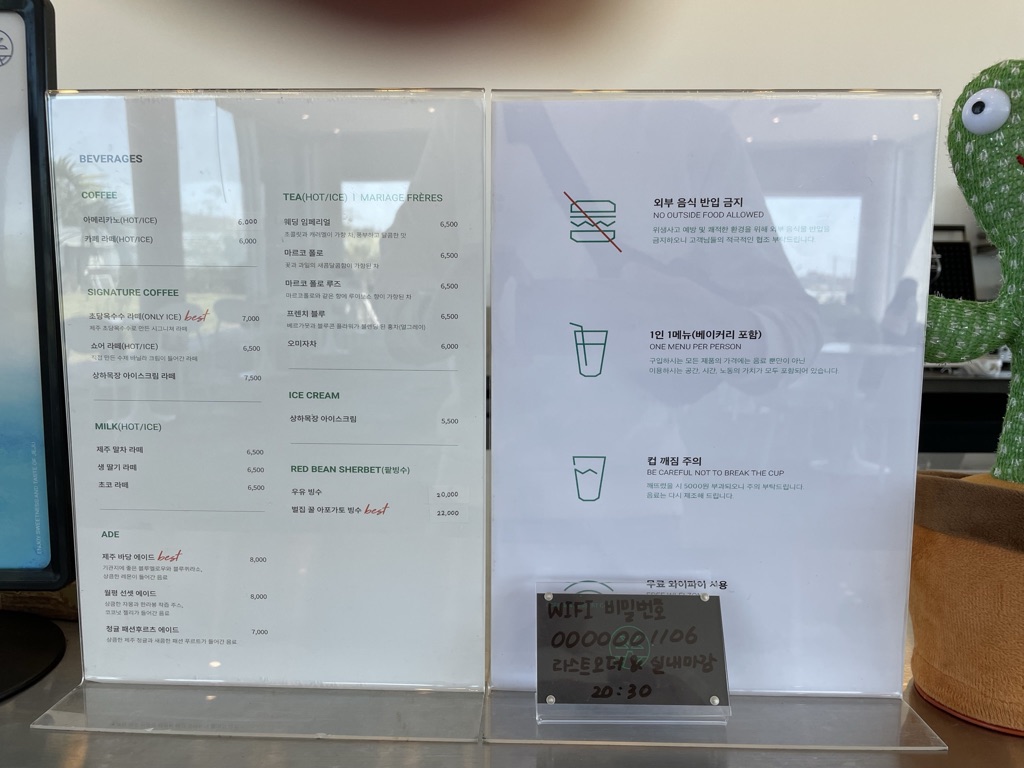 대표메뉴 : 쇼어라떼, 초당옥수수라떼, 제주 바당 에이드