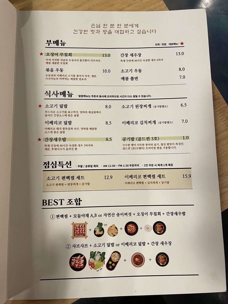 소고기 덮밥, 소고기 된장찌개, 이베리코 덮밥, 이베리코 김치찌개, 간장새우밥, 공기밥