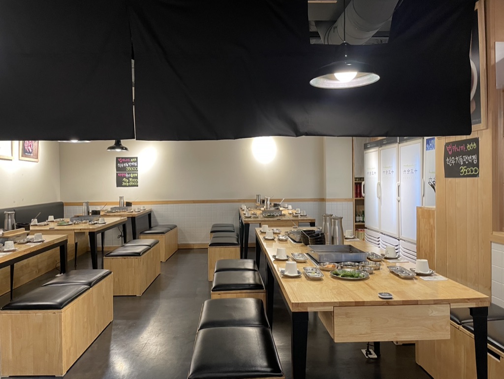 실내에는 자리가 많이 있습니다. 단체손님을 위한 공간도 준비되어 있네요.