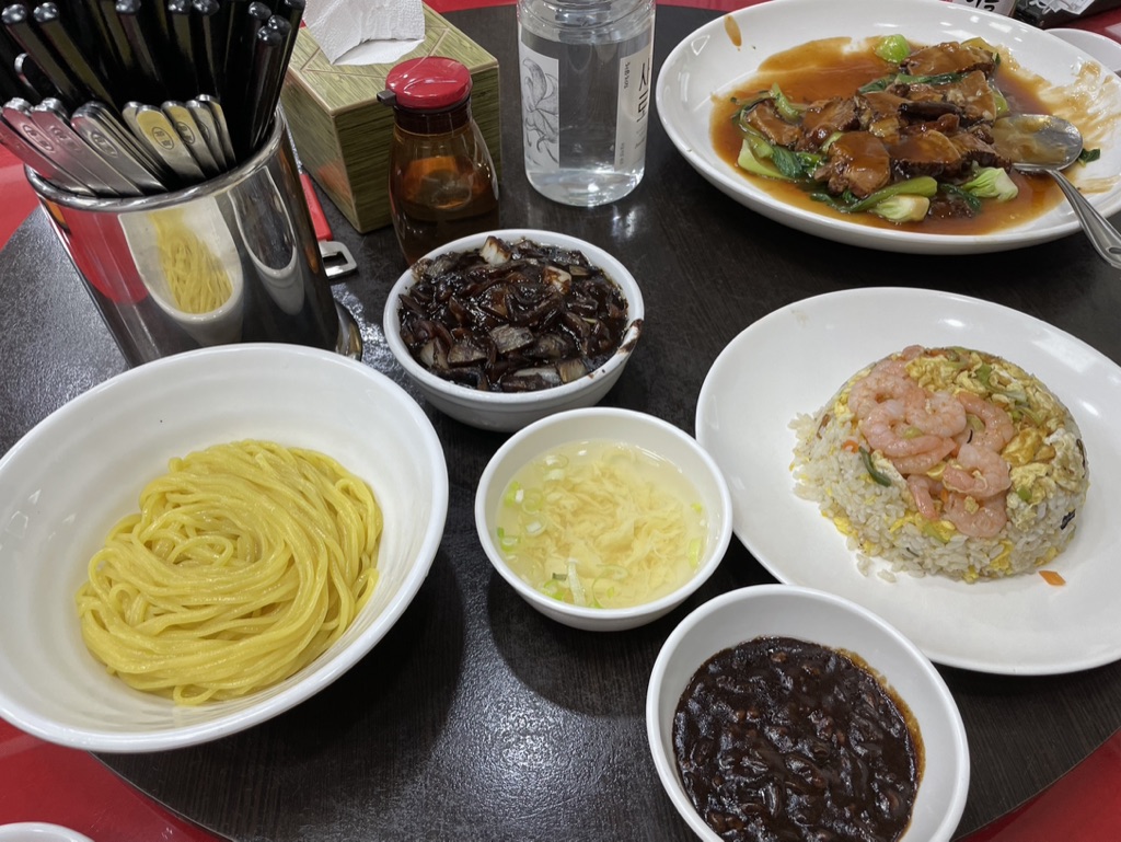 식사로는 간짜장과 볶음밥을 시켰습니다.