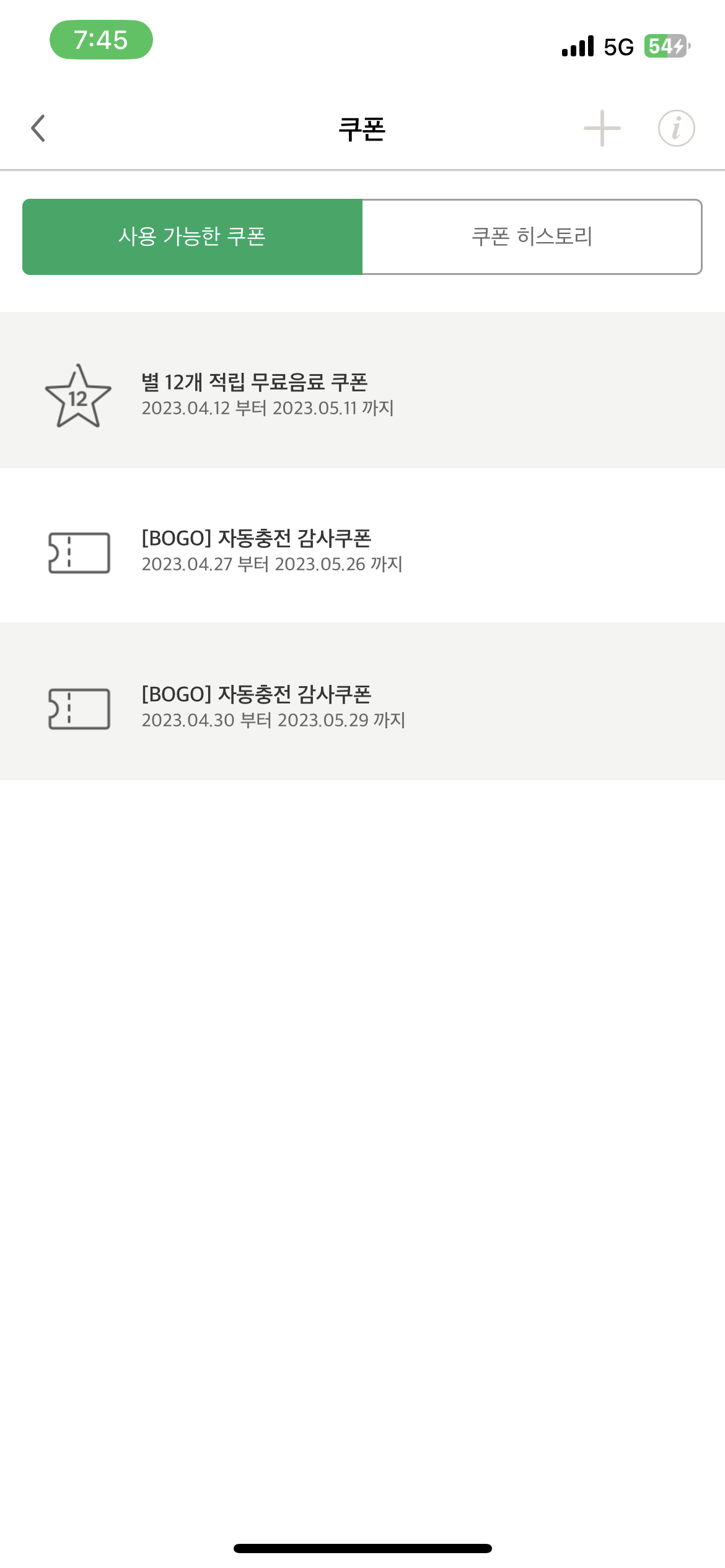 자동충전이 되면 익일 보고 쿠폰이 발급됩니다.