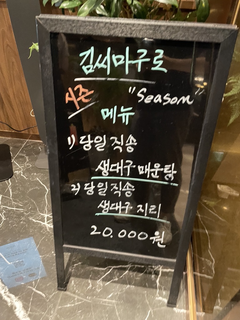 입구 한쪽에는 시즌 메뉴 안내가 있네요.
