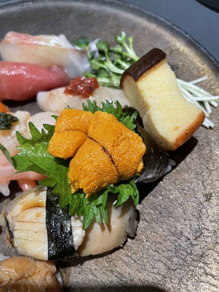 모듬 스시에 없는 우니, 전복 스시가 있습니다.