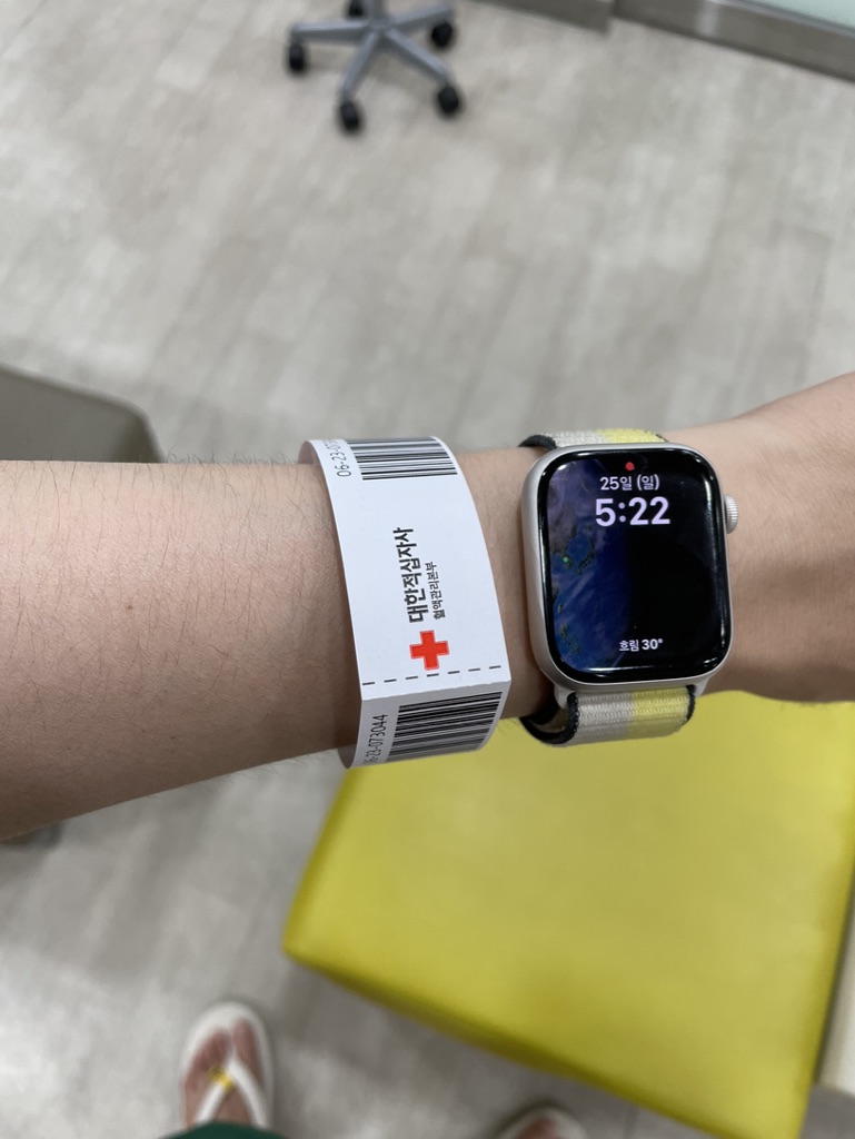 문진실에서 헌혈이 가능하다고 판단이 되면 요런 팔찌를 붙여주세요.