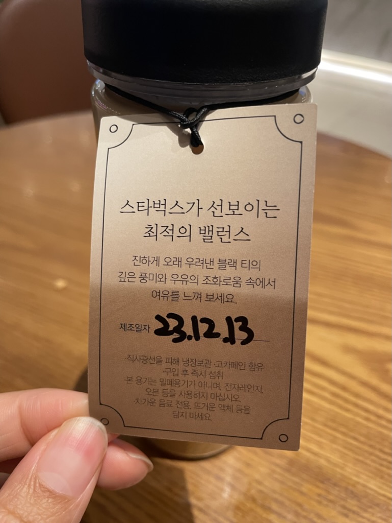 스타벅스 클래식 밀크티라고 라벨이 묶여있네요.