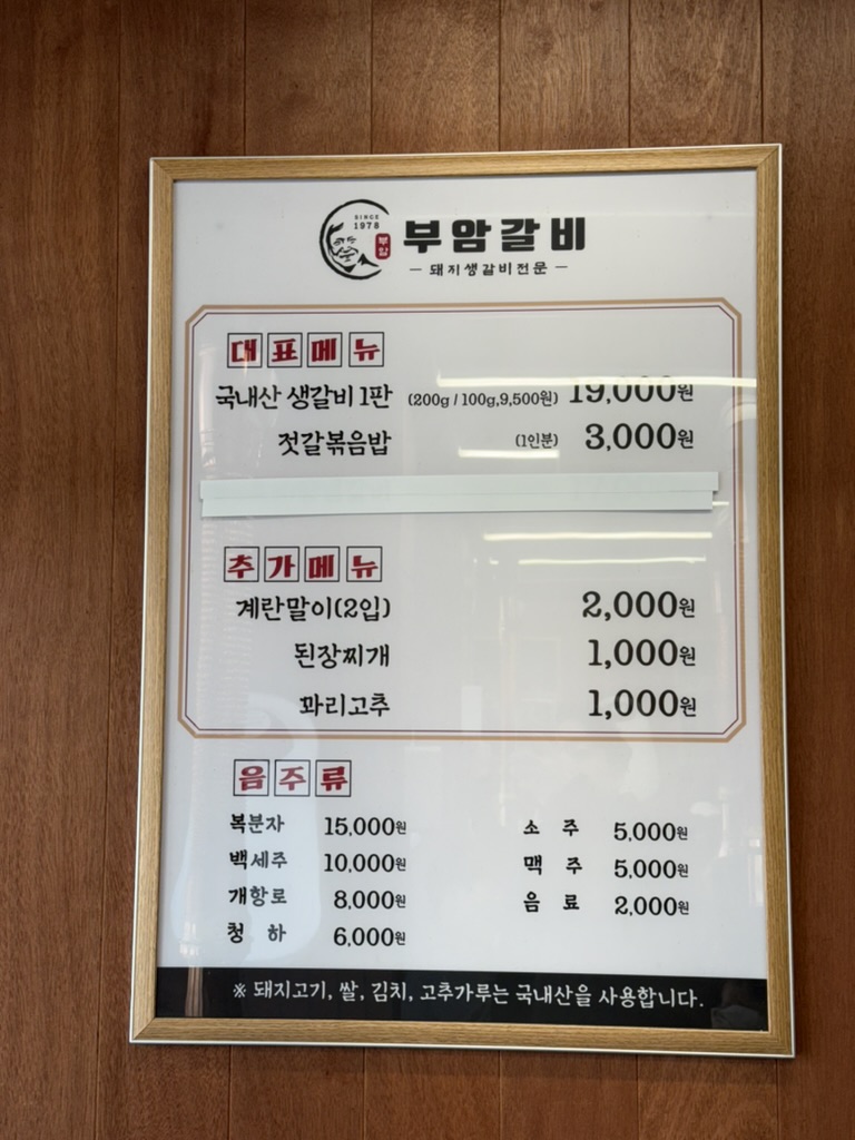 대표 메뉴 : 국내산 생갈비 1판, 젓갈볶음밥