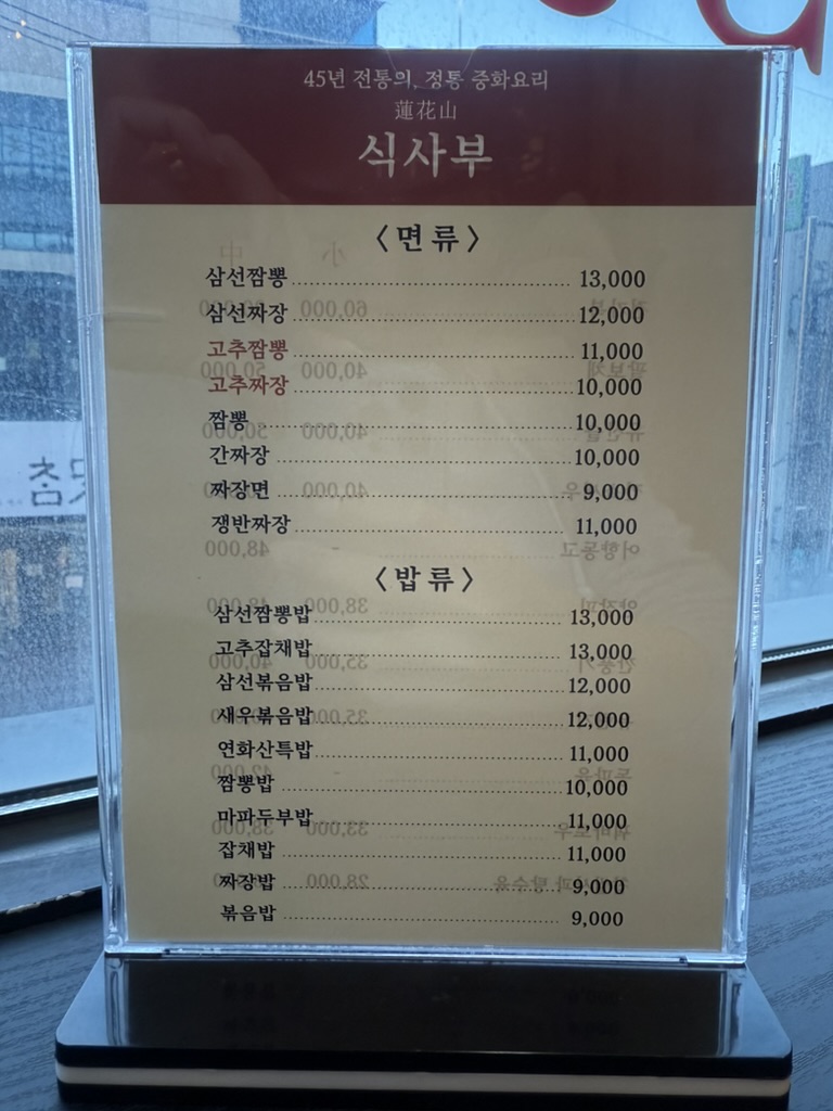 삼선짬뽕밥, 고추잡채밥, 삼선볶음밥, 새우볶음밥, 연화산특밥, 짬뽕밥, 마파두부밥, 잡채밥, 짜장밥, 볶음밥