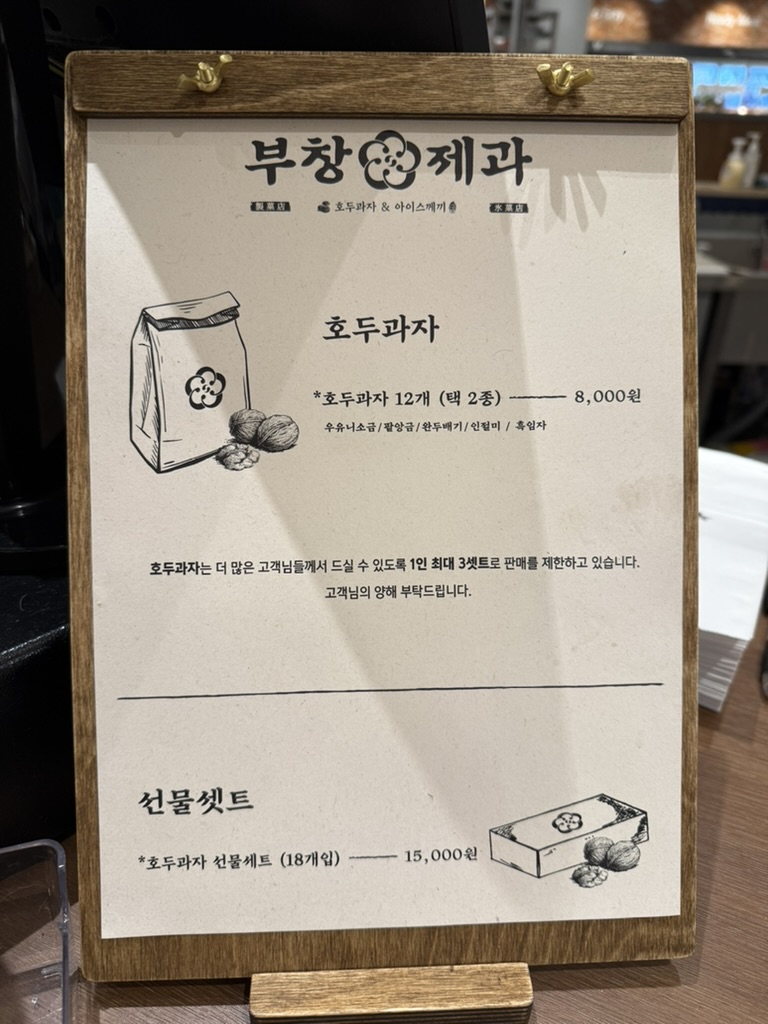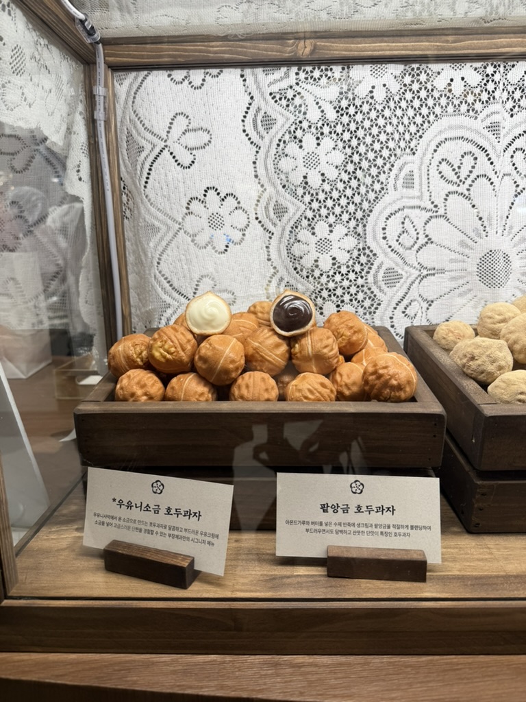 대표 메뉴 : 유유니소금 호두과자, 팥앙금 호두과자, 흑임자 호두과자