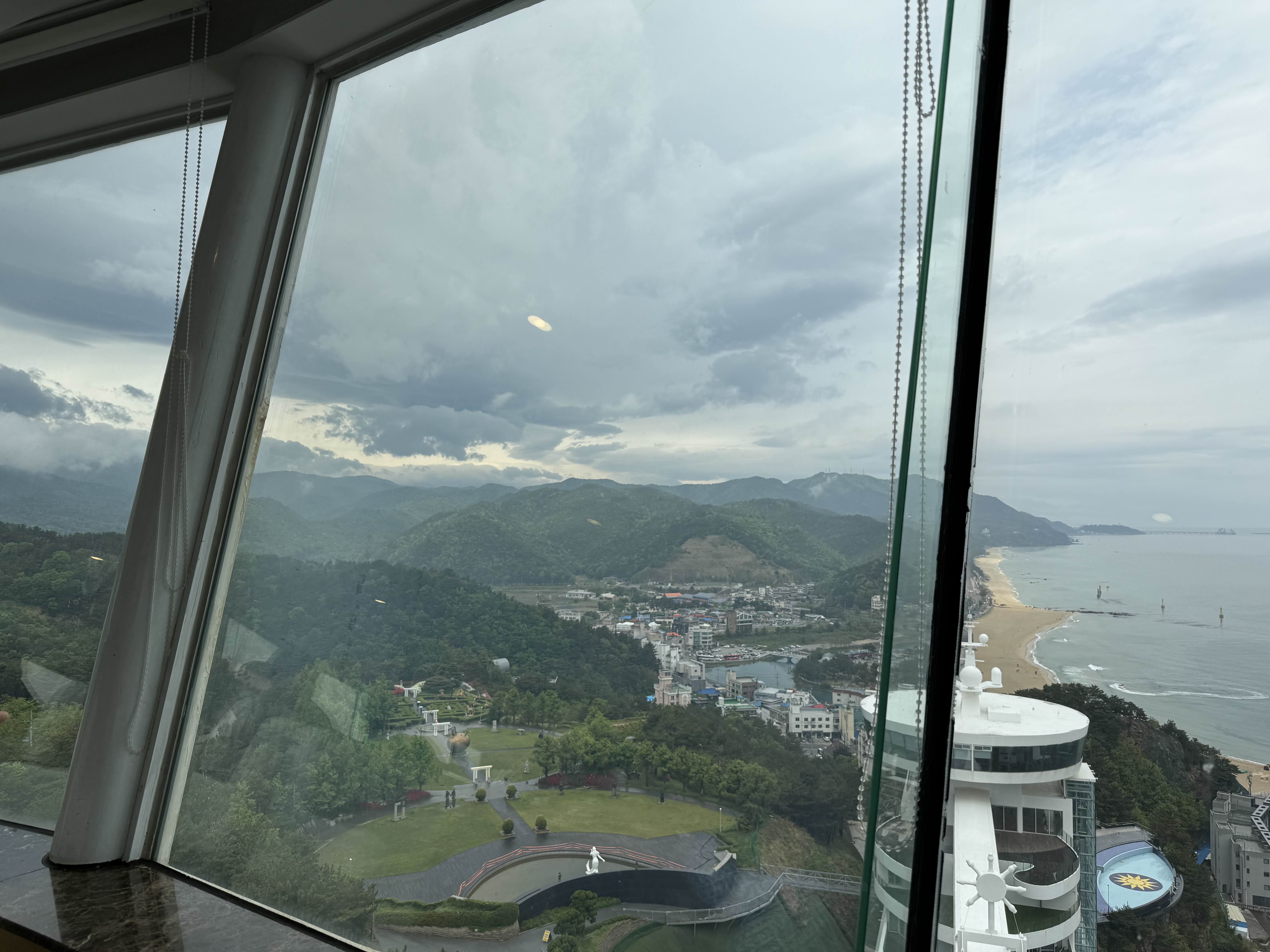 자리가 빙글빙글 돌아서 바다와 산을 앉아서 한번에 볼 수 있어요.