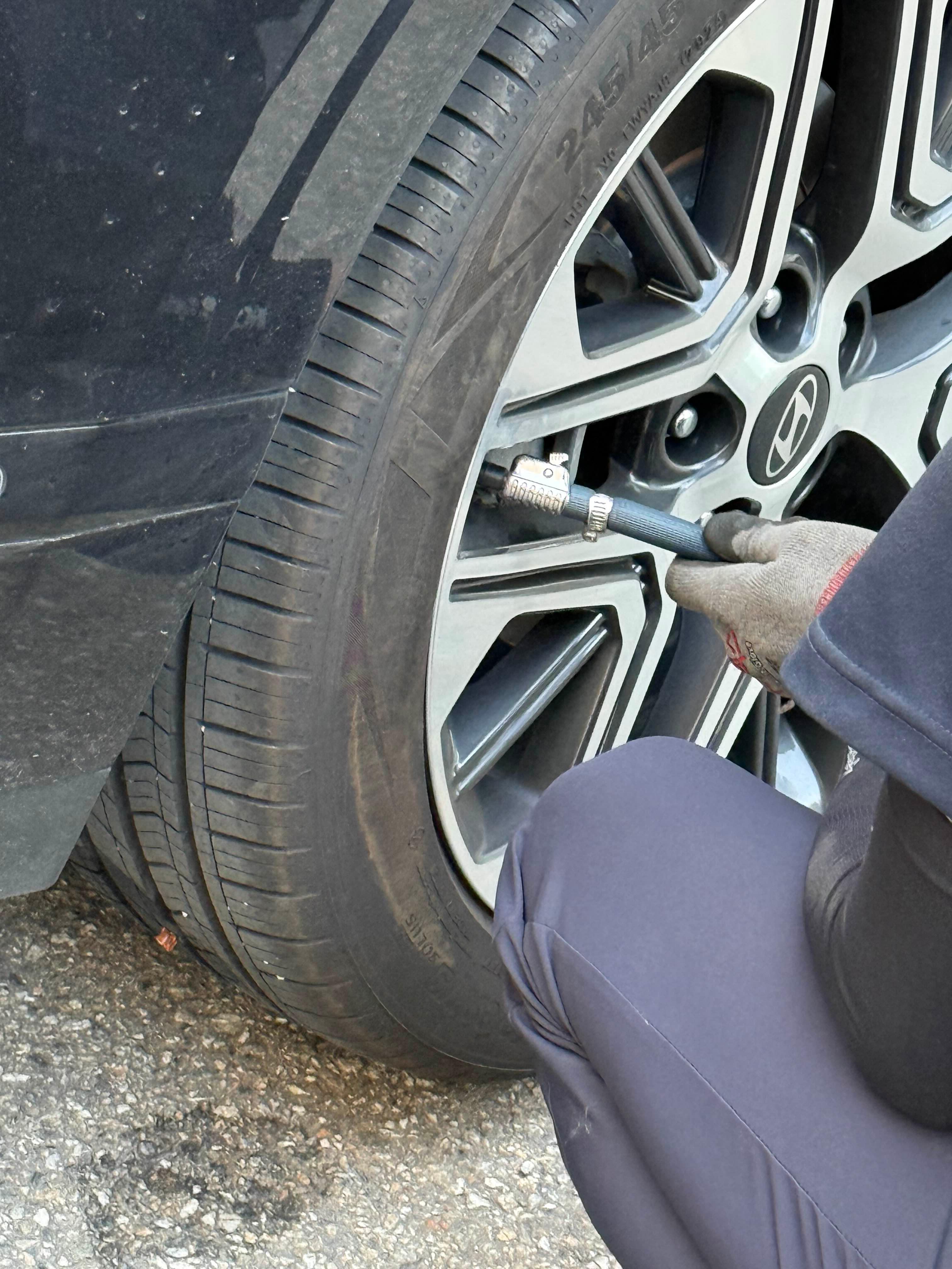 갑작스러웠지만 당황하지 않고 경고등이 뜬 타이어 상태를 확인해 봤습니다.
