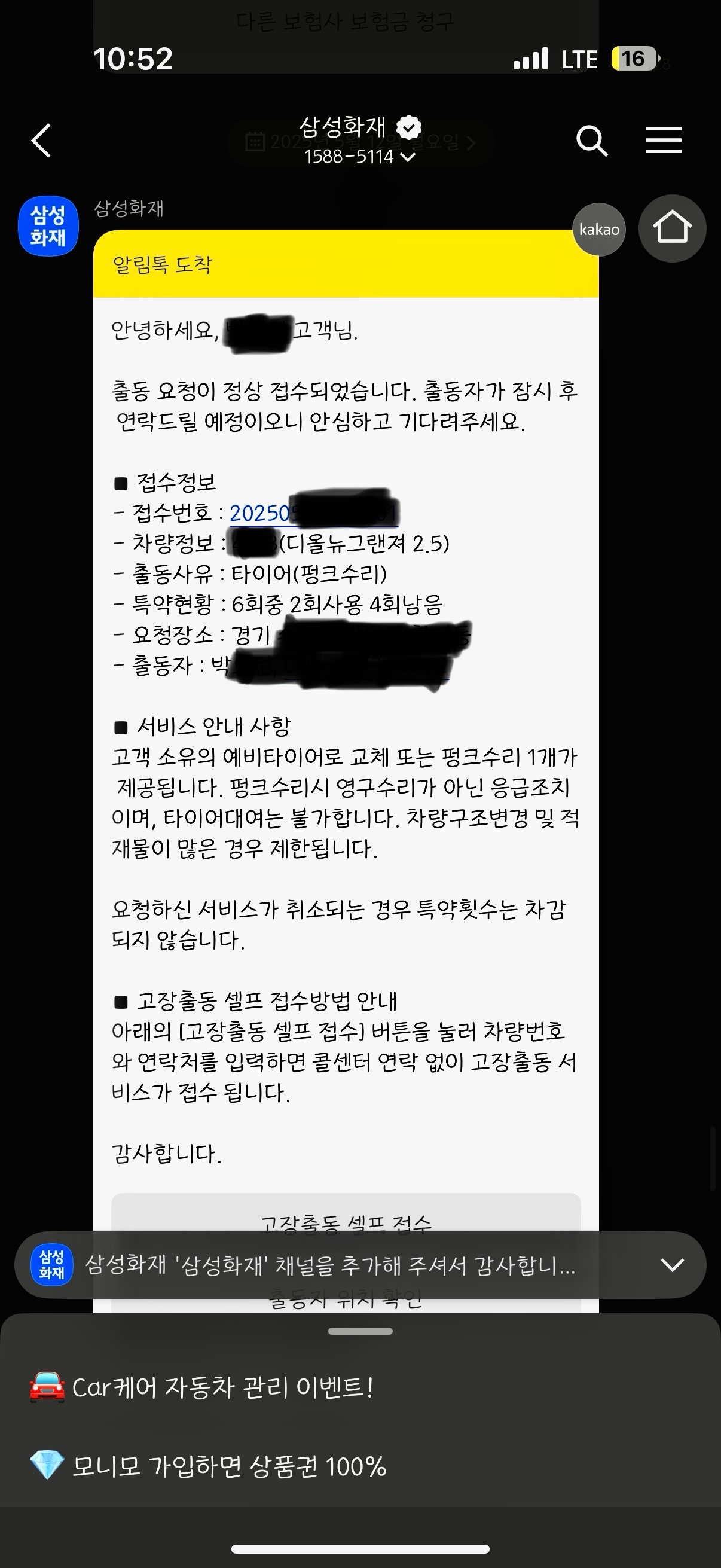 저는 삼성화재에 자동차 보험을 들었기 때문에 삼성화재에 요청했어요.