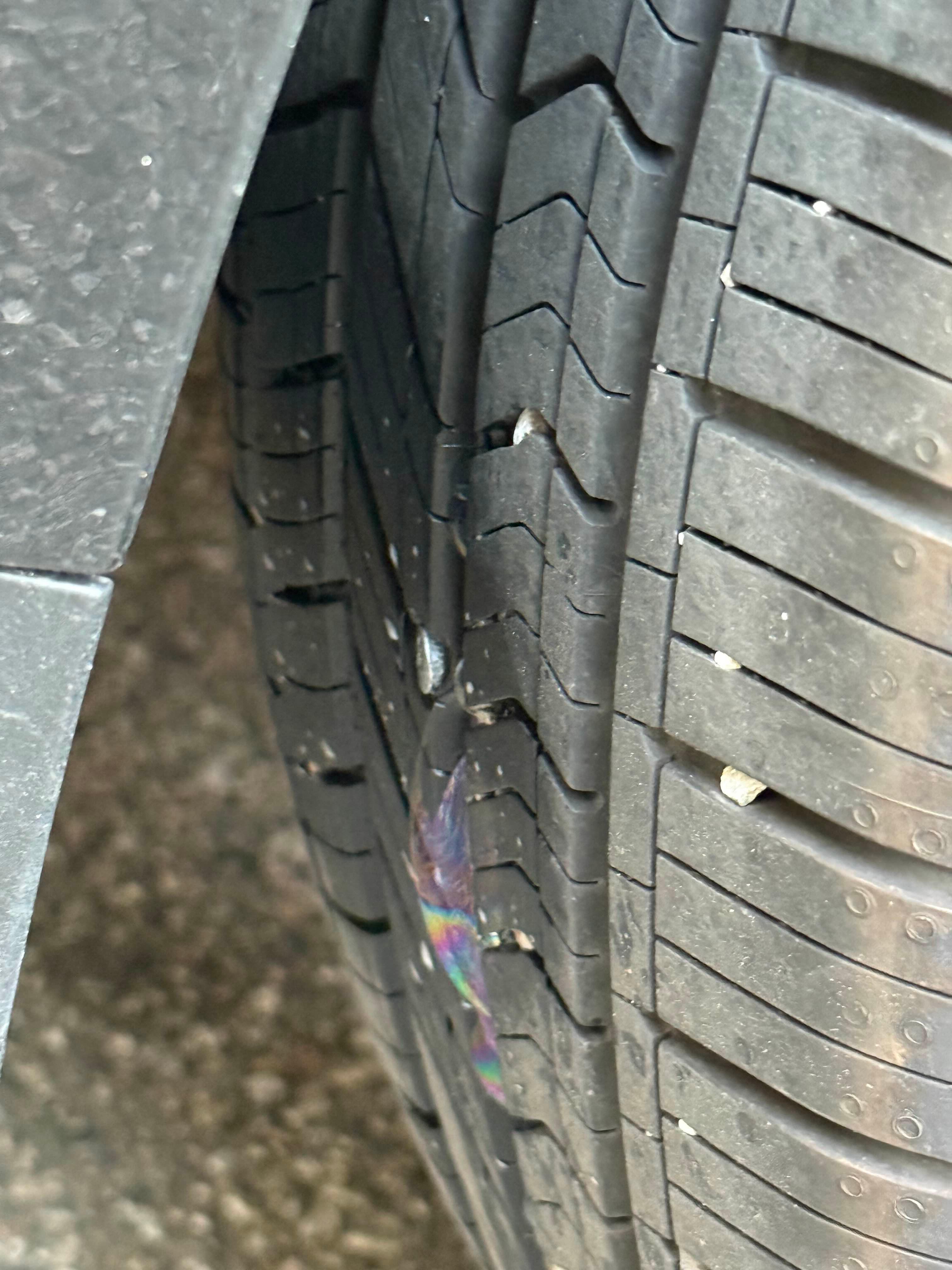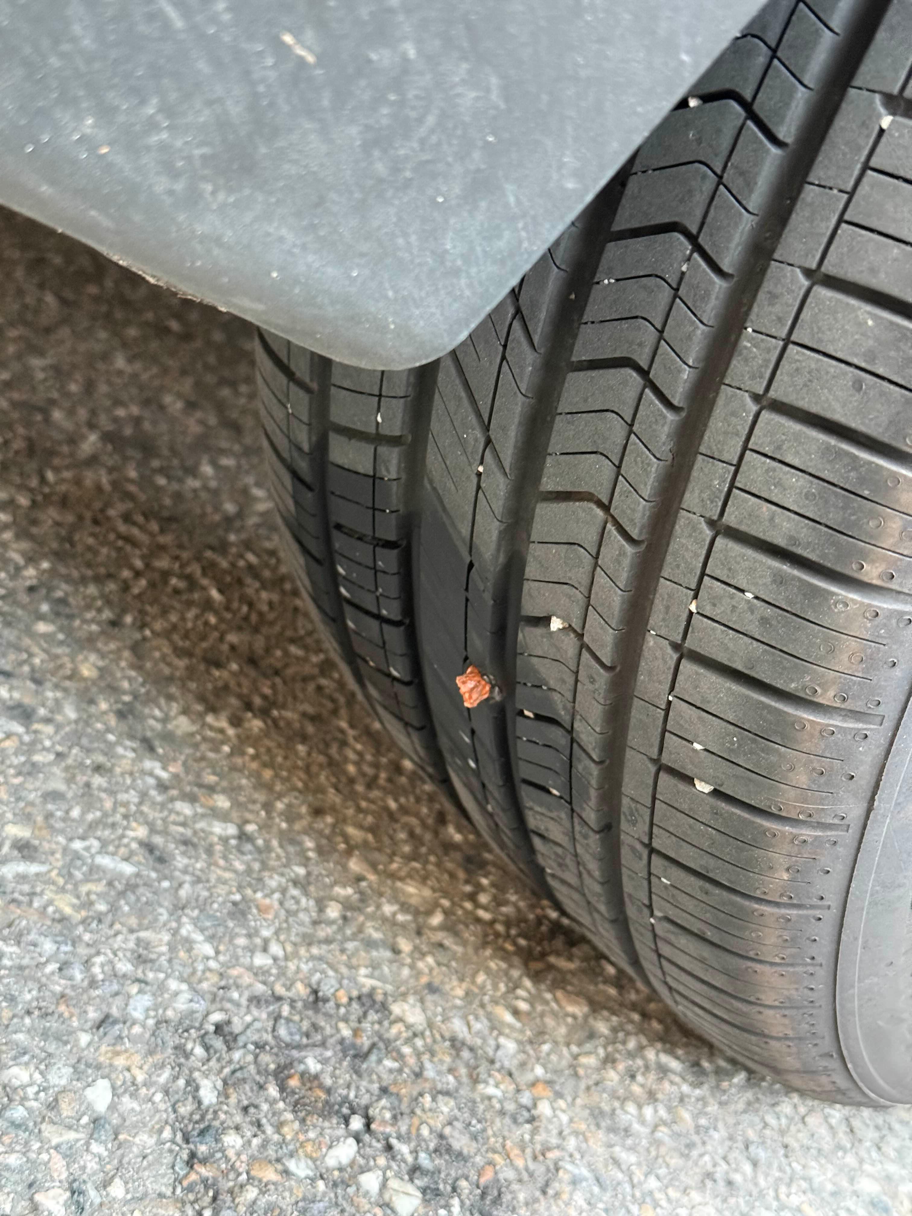 경고등이 뜬 타이어를 보니 못이 박혀있었어요.