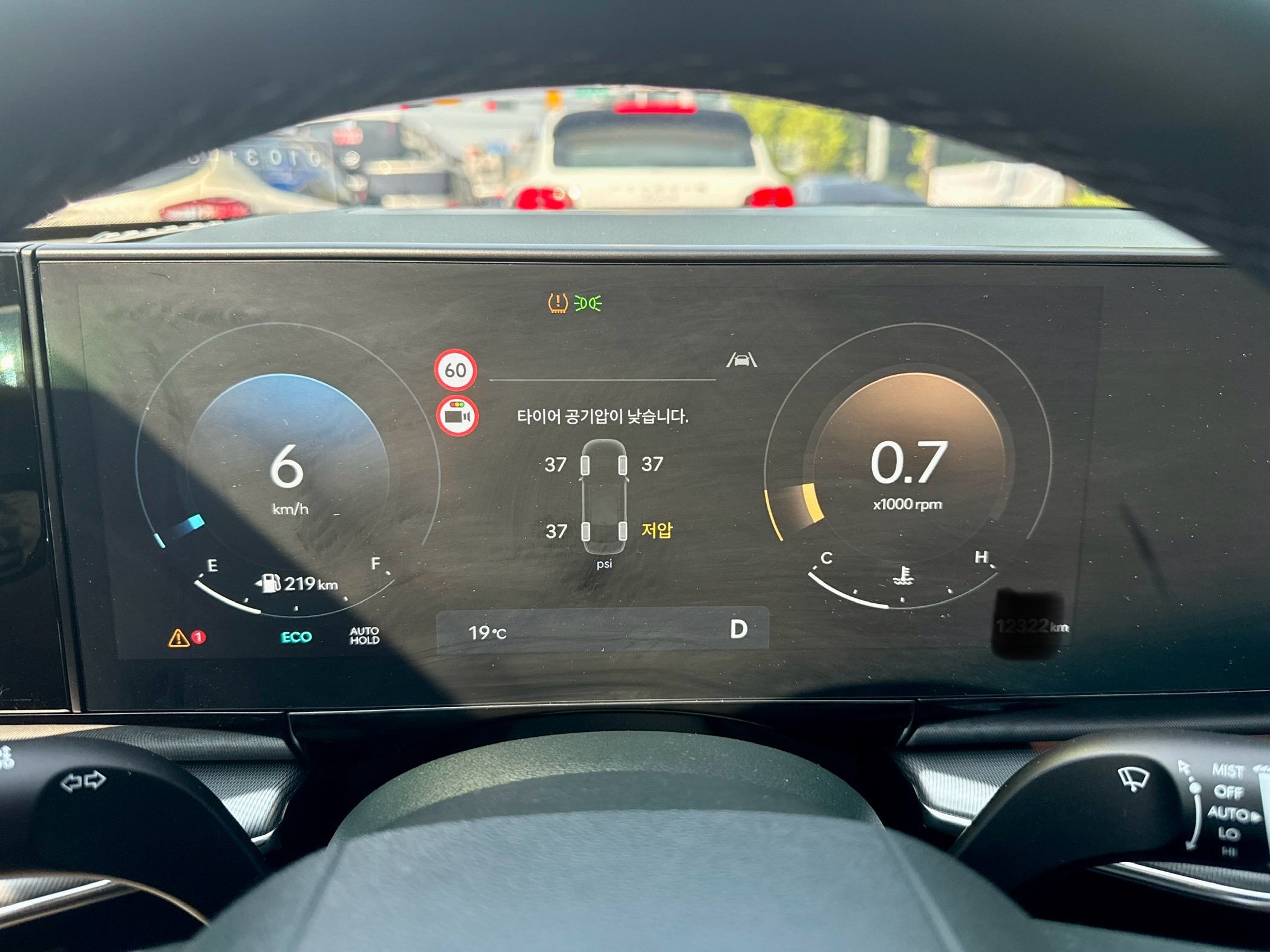 차량 운행을 위해 시동을 켜는 순간 계기판에 타이어 경고등이 떴습니다.