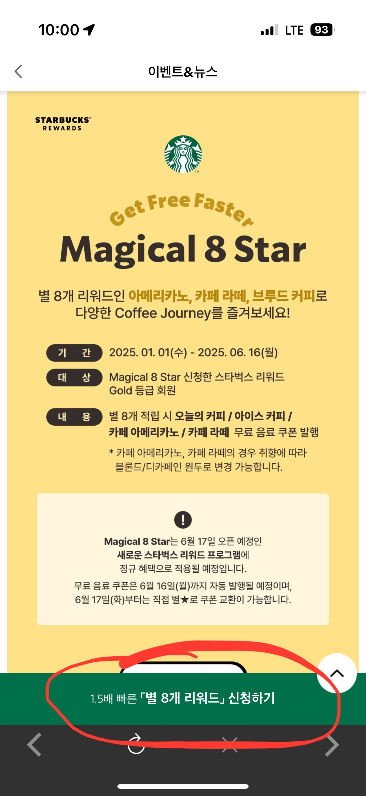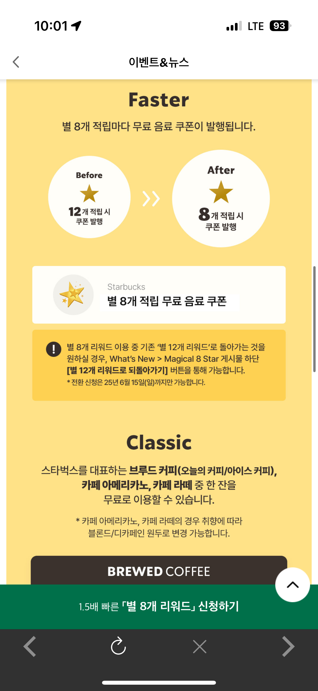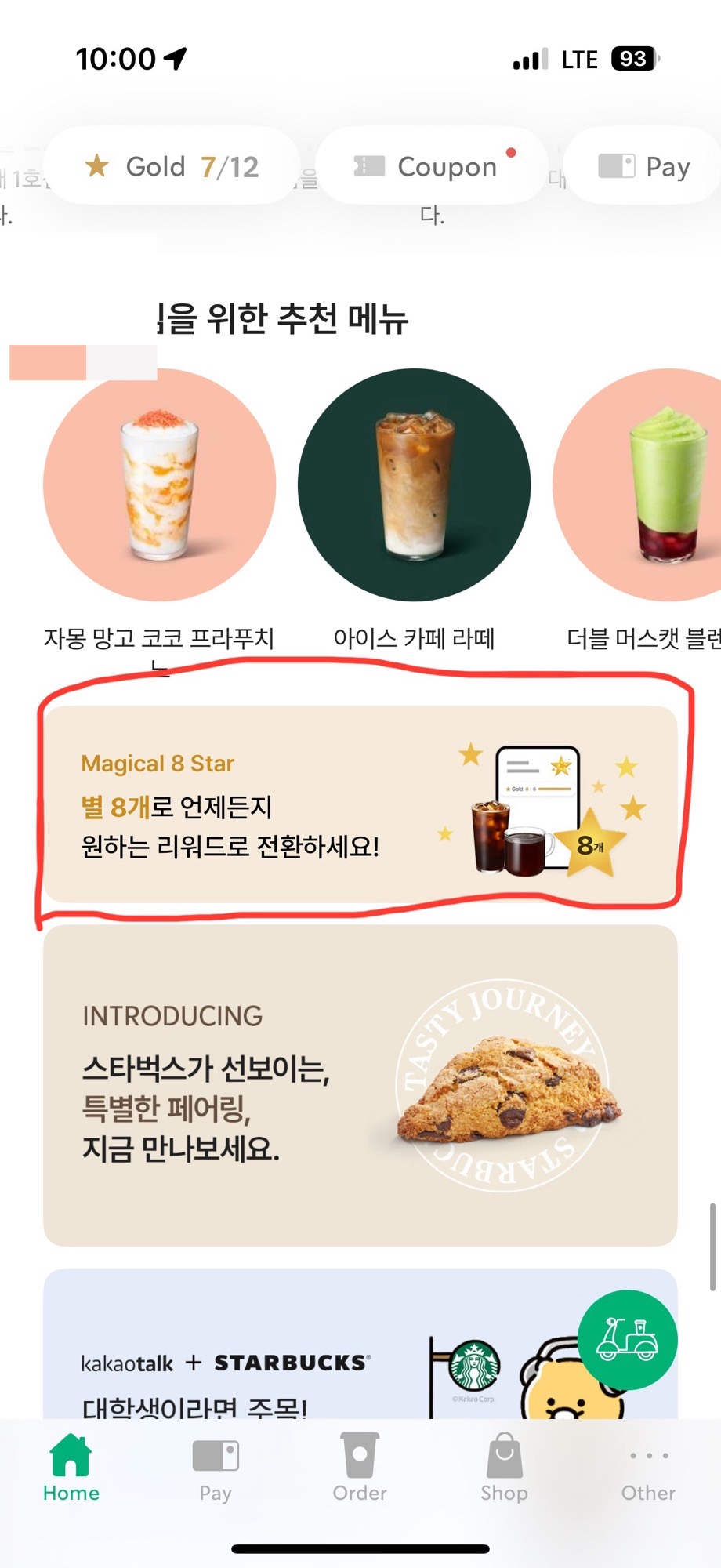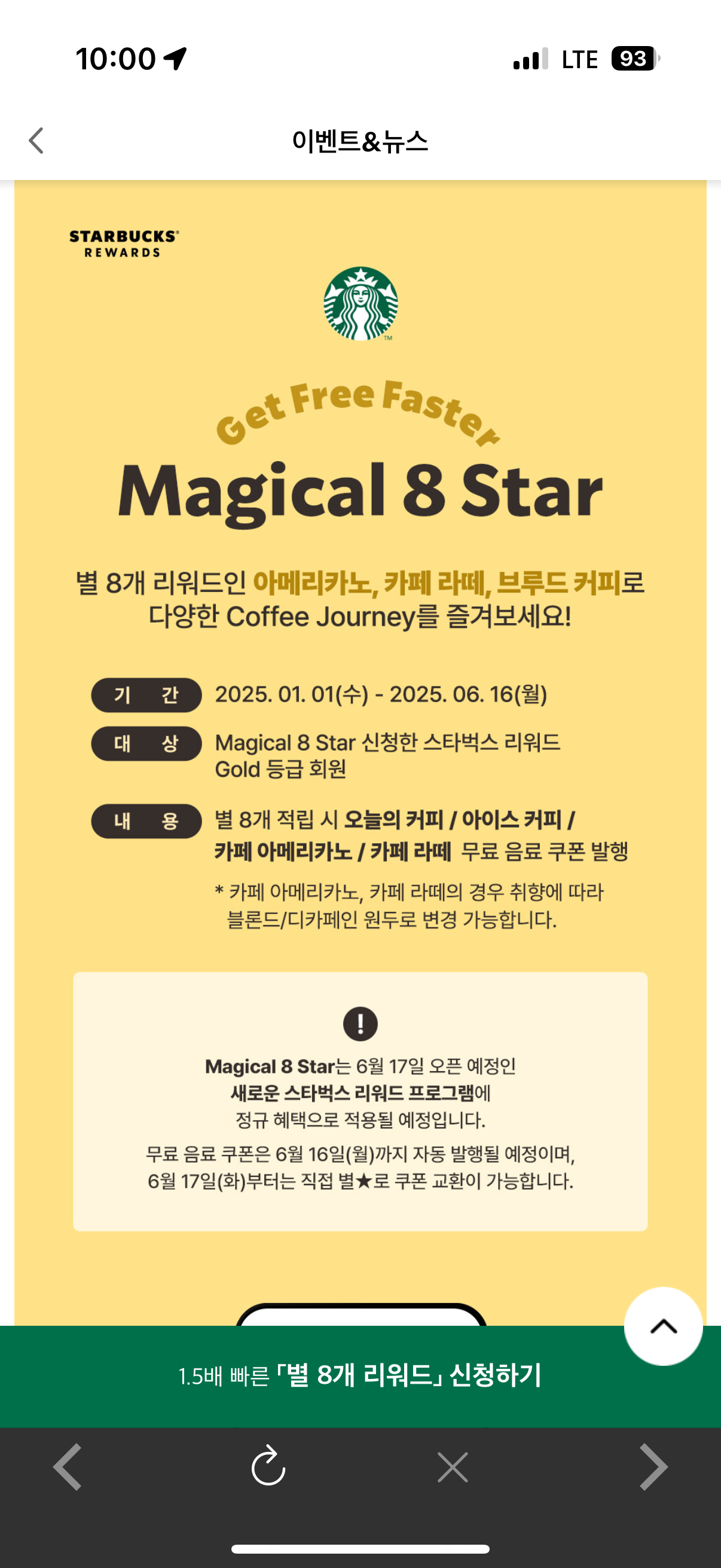 별 8개만 적립 하면 받을 수 있는 쿠폰이라서 12개 보다는 적은 별로 받을 수 있지만 제공되는 음료가 한정적입니다.