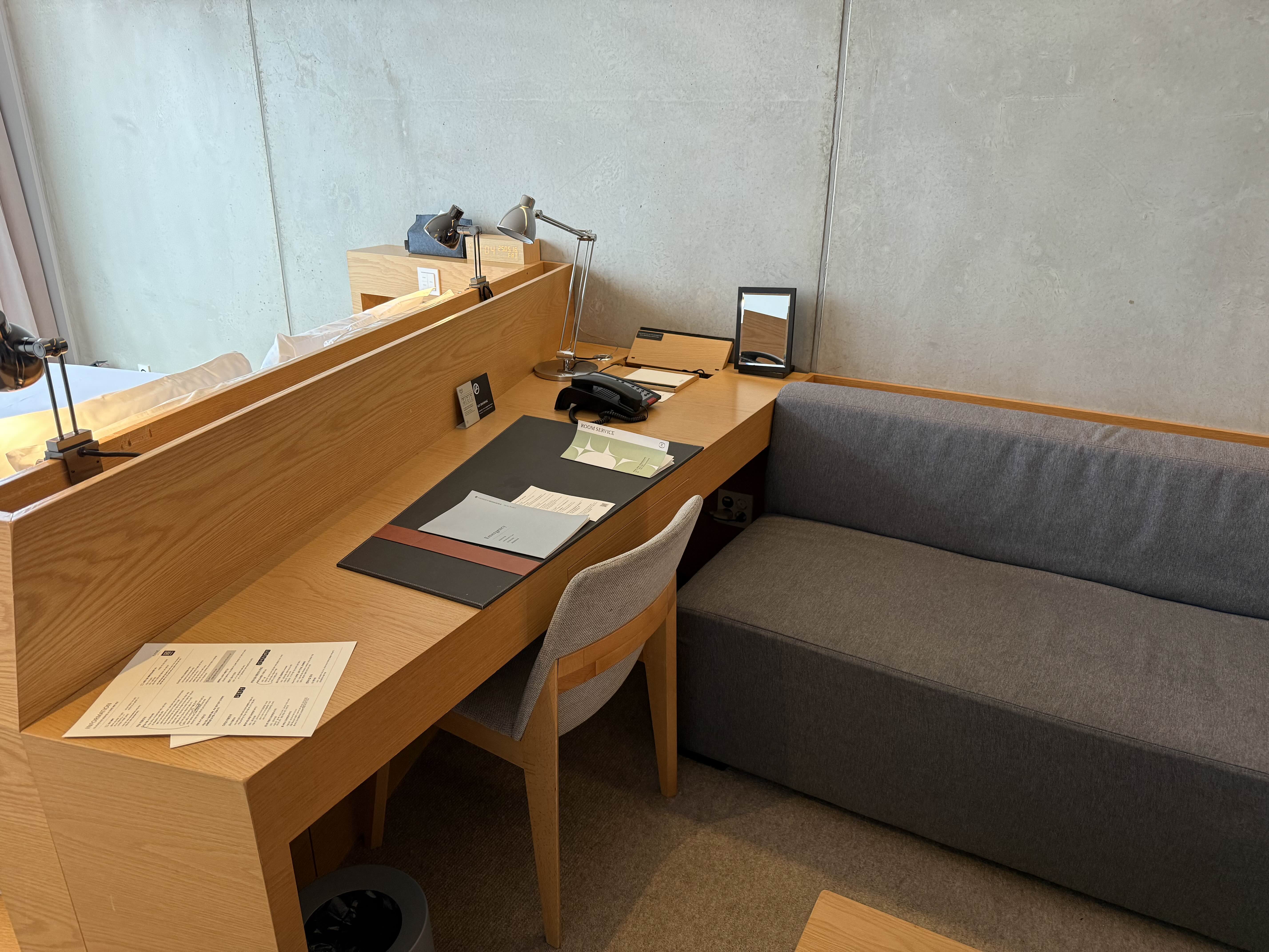 침대 헤드 뒤편에는 아래 처럼 책상이 있어요.