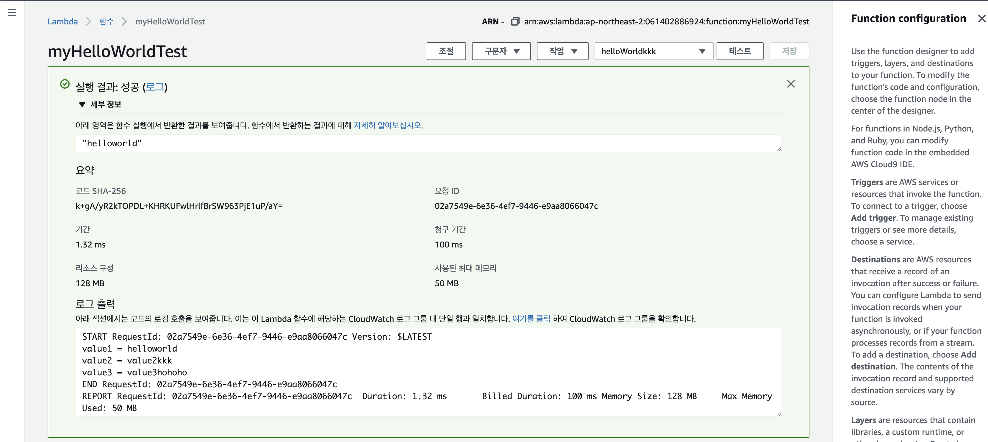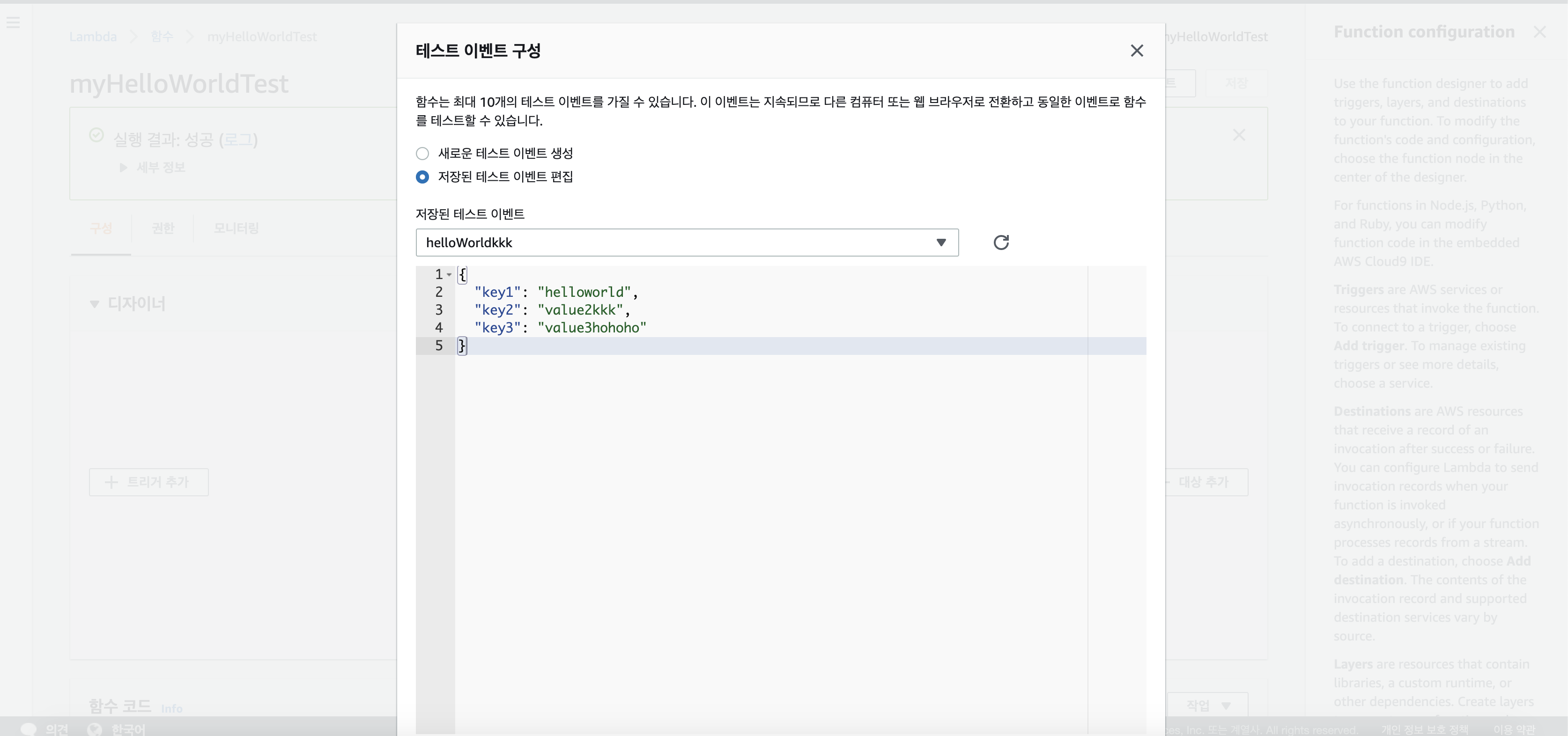 이제 Lambda 함수가 생성 되었으니 이제 테스트 해봐야죠