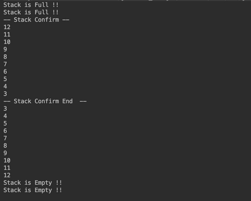 System.out.println("-- Stack Confirm End  --");