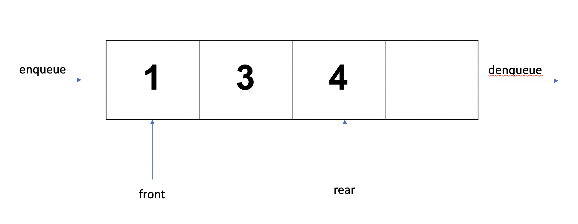 큐에 넣는것을 enqueue 큐에서 꺼내는 것을 dequeue 라고 합니다.