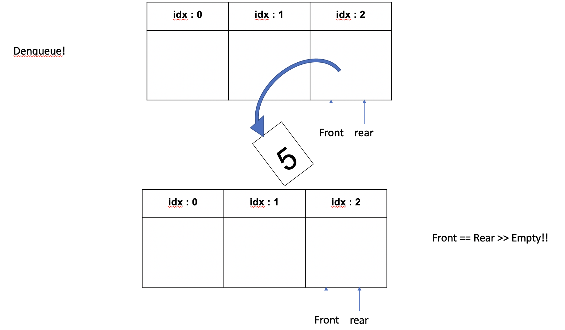 다 빼개 되면 처음과 같이 front == rear 상태가 됩니다.